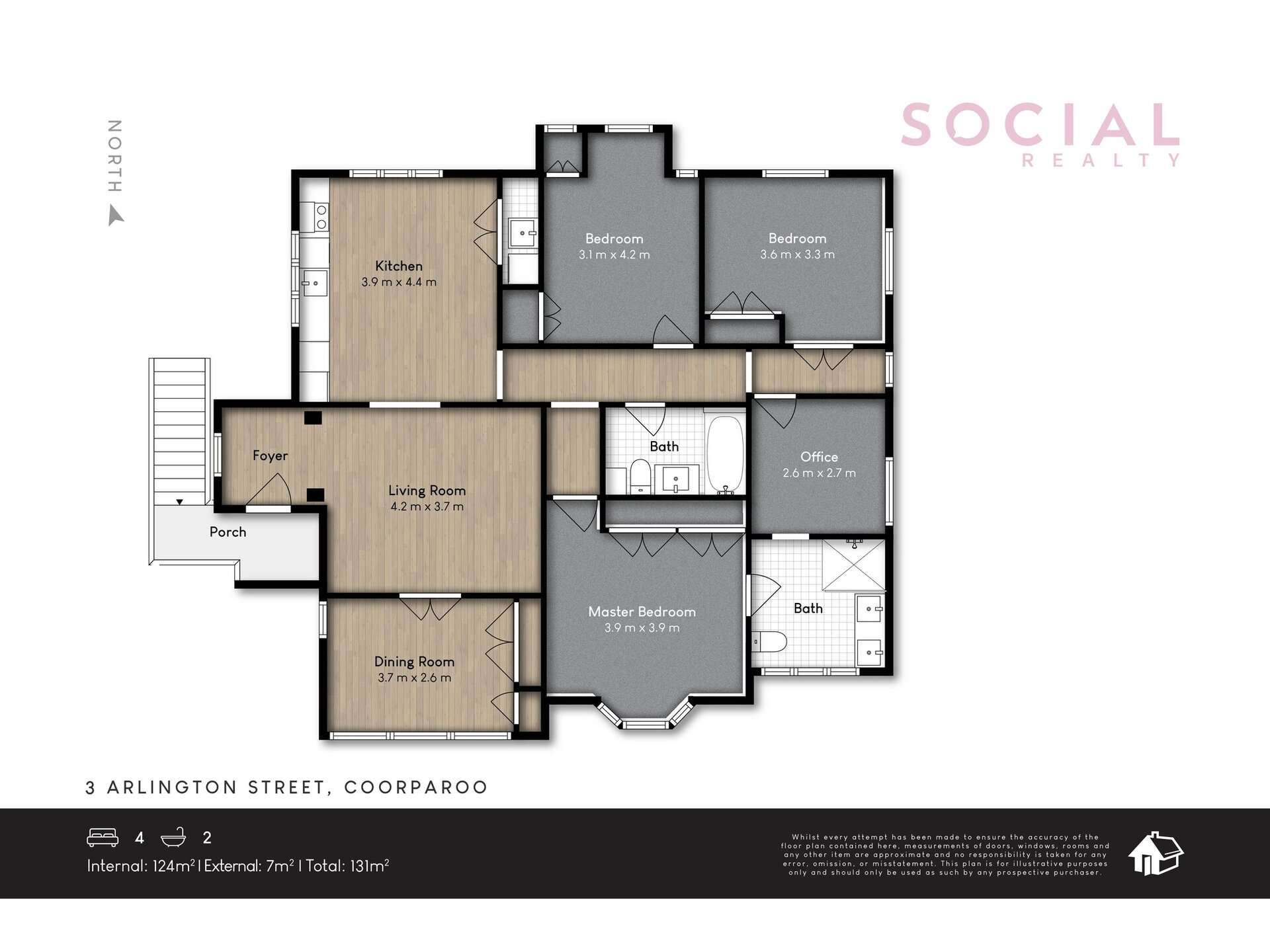 The second and third bedrooms are generously sized, both equipped with built-in robes. One of them comes with air conditioning, while the other boasts a cozy alcove. The fourth bedroom, also air-conditioned, offers versatility and could easily function as a study or guest room.